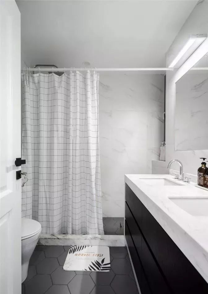 浴簾+擋水條,衛(wèi)生間干濕分離的平價神器。浴簾,防止淋浴時候的水濺落到外面;擋水條,可以控制水不流出去。