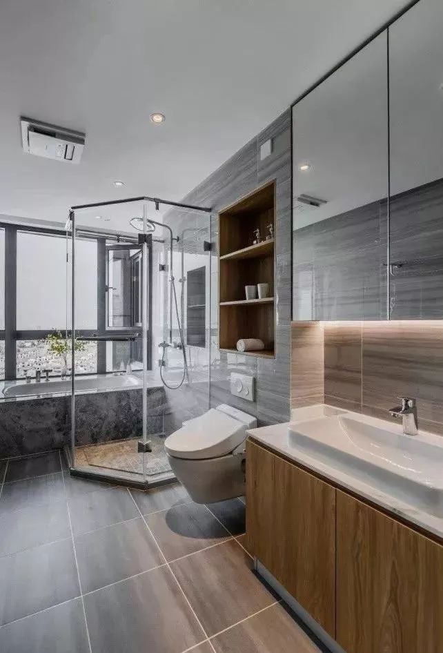 減少衛(wèi)生間的濕區(qū)面積,最直接的方式就是做一個干濕分離的衛(wèi)生間。它不僅僅能解決多人同時需要使用衛(wèi)生間的尷尬,