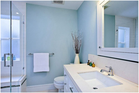 衛(wèi)生間本身就給人陰暗、潮濕、局促的感覺,所以小衛(wèi)生間最好不要大面積使用深色,否則容易讓人覺得壓抑,而且看起來臟臟的。在色調(diào)選擇方面最好采用淺色系,可以采用白色搭配一些明黃、淡藍(lán)色等。