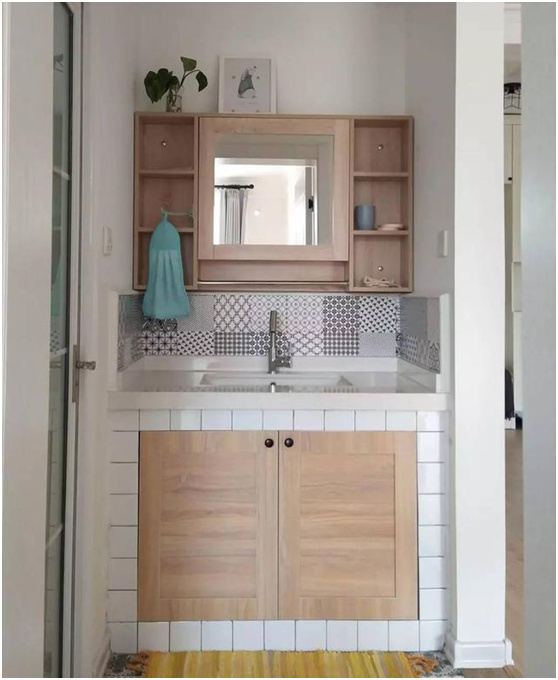 可以在衛(wèi)生間多設(shè)置一些多功能收納柜,例如浴室柜、鏡柜和底柜等等。