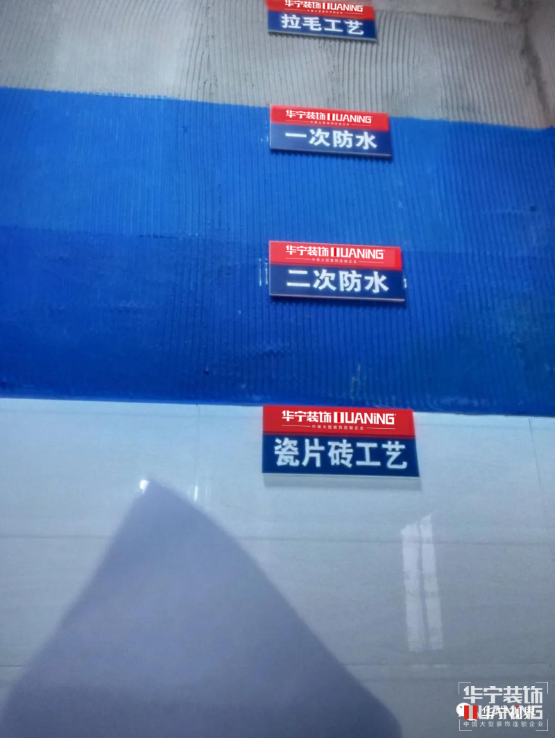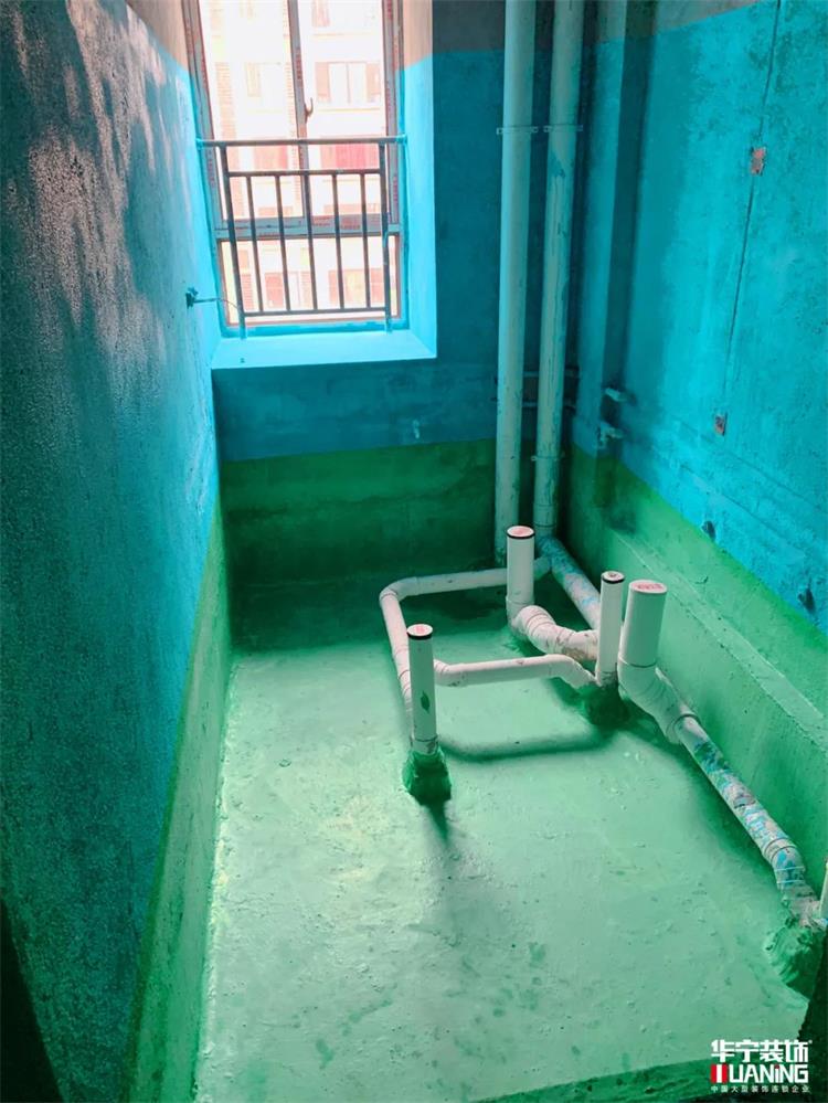完整的防水施工分六個部分:基層處理→涂抹墻面防水→鋪貼門檻石→涂抹地面防水→閉水試驗→做保護層。