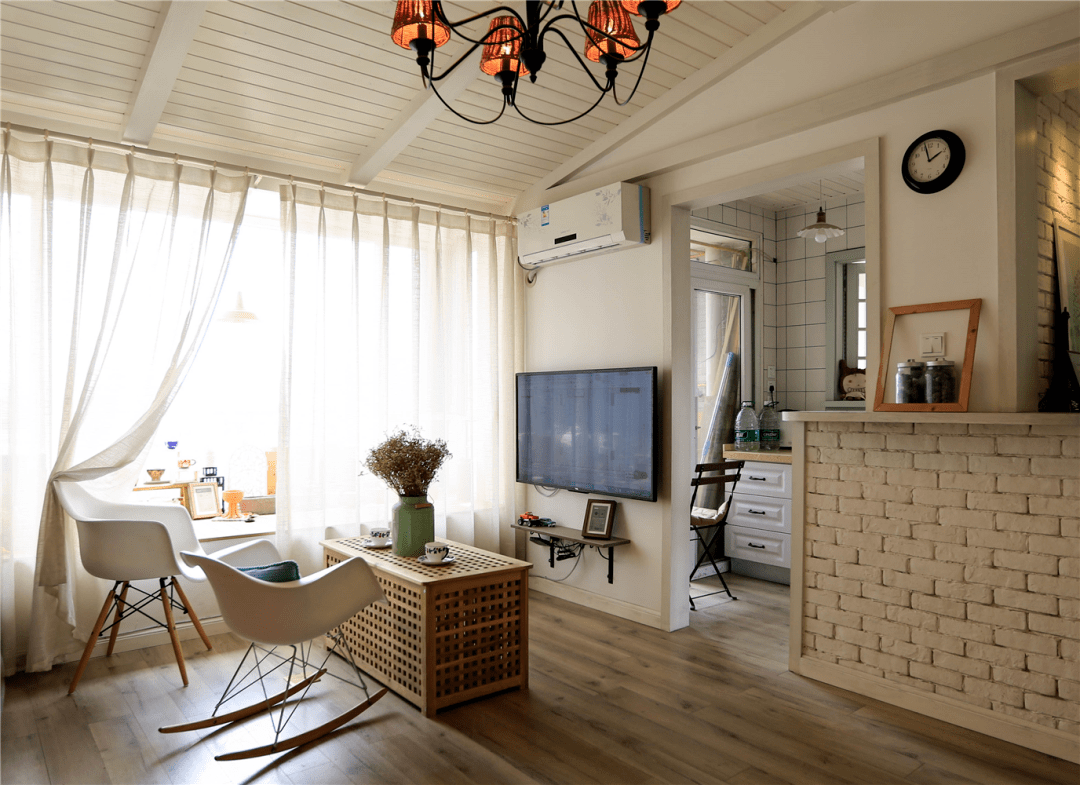 其實(shí)很多小戶型之所以看上去空間狹小,不夠美觀,主要還是因?yàn)榧揖哒剂颂嗟牡胤剑娣e本來就小,再放一個(gè)笨重的大沙發(fā)、大茶幾,整個(gè)空間就會(huì)瞬間被“充實(shí)”,看起來亂糟糟的。