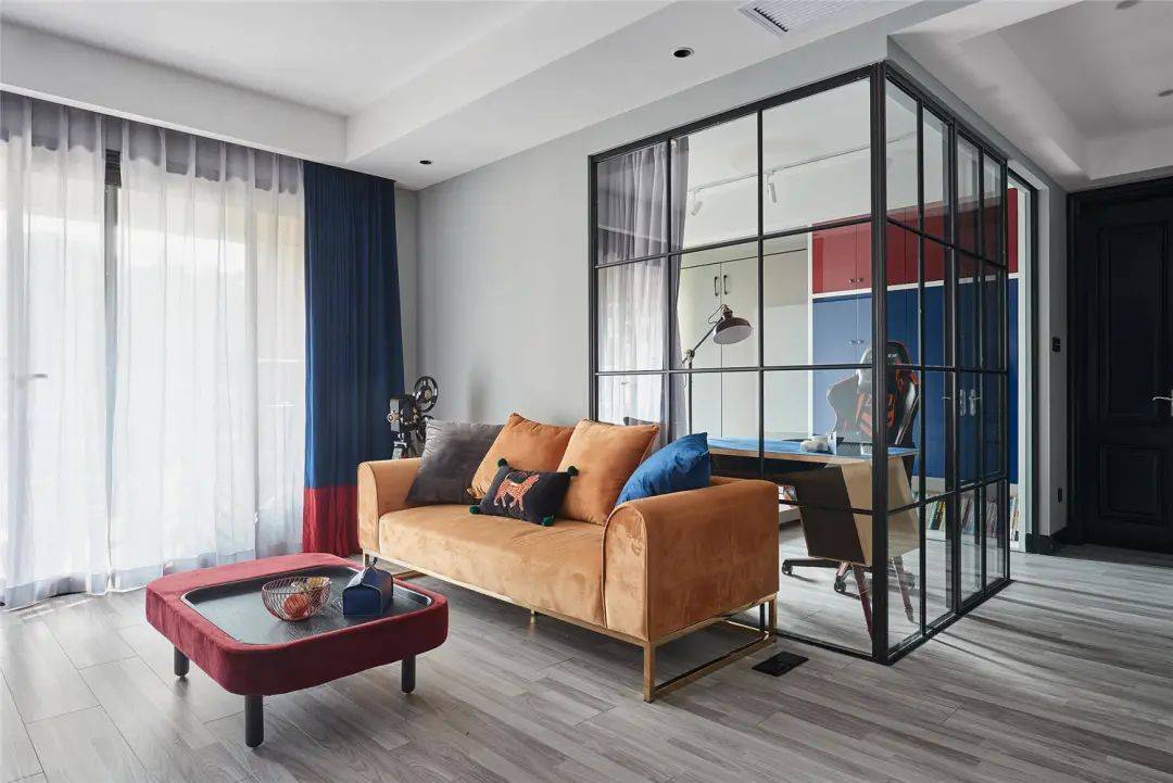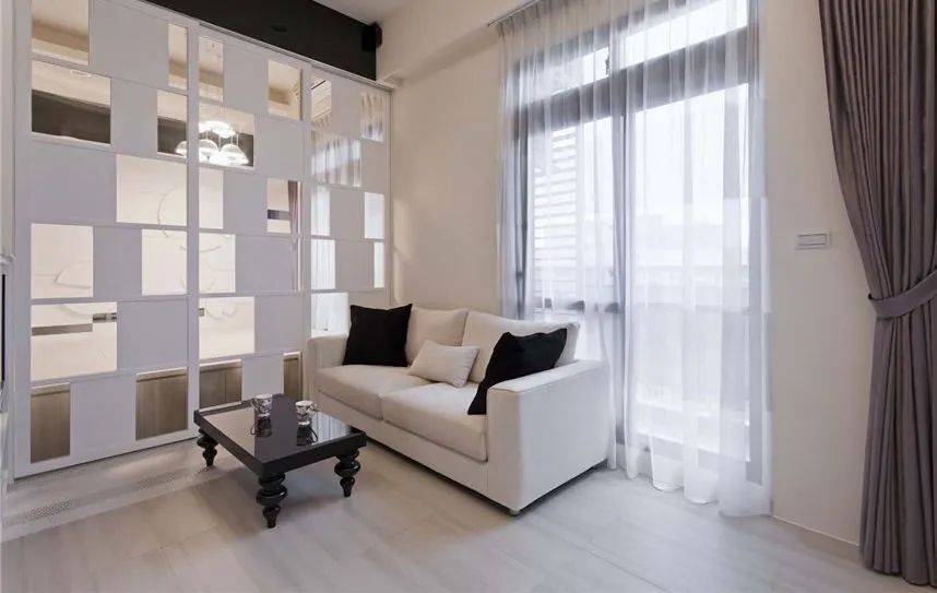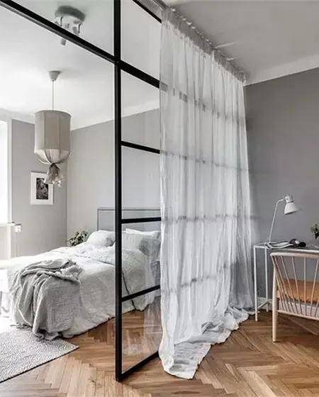 如果真的需要獨(dú)立空間,可以用玻璃隔斷取代傳統(tǒng)的墻體隔斷,需要隱私時(shí)再拉上窗簾即可。