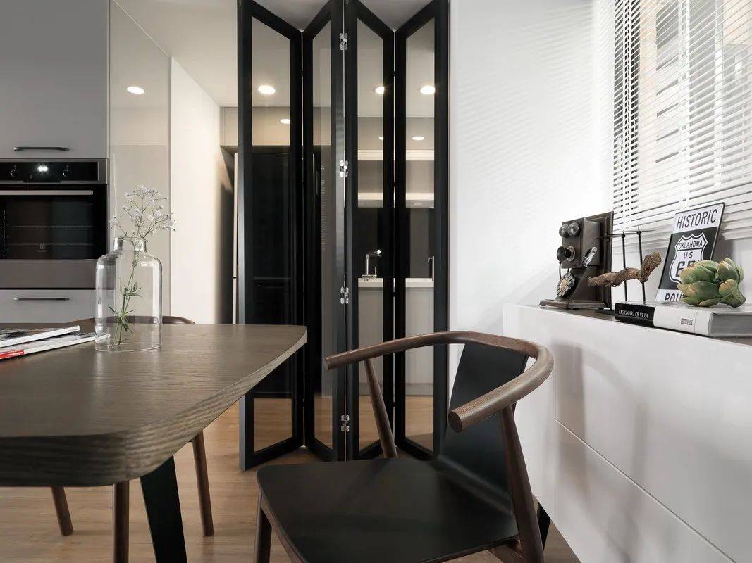 而且折疊門關(guān)起時(shí),還可以清晰劃分空間功能,完全打開后,又讓兩個(gè)相鄰空間變?yōu)橐粋€(gè)整體,空間劃分更加靈活,且有助于空間通透性的塑造。