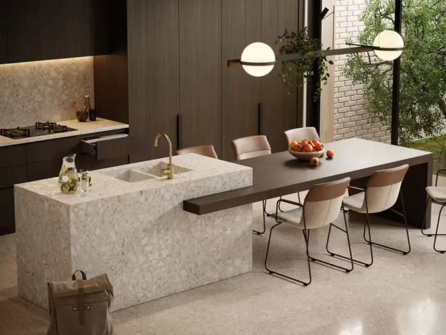 高低錯落,有設計感不說,家里所有人都可以參與烹飪當中,當然,島臺也不例外,高低之間,直接多出來一個餐桌。