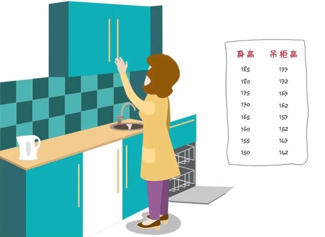 總之,不管是臺面還是吊柜都要根據(jù)烹飪者的身高來做相對應的尺寸調整,這樣,才不會因為影響日常洗菜、做飯......