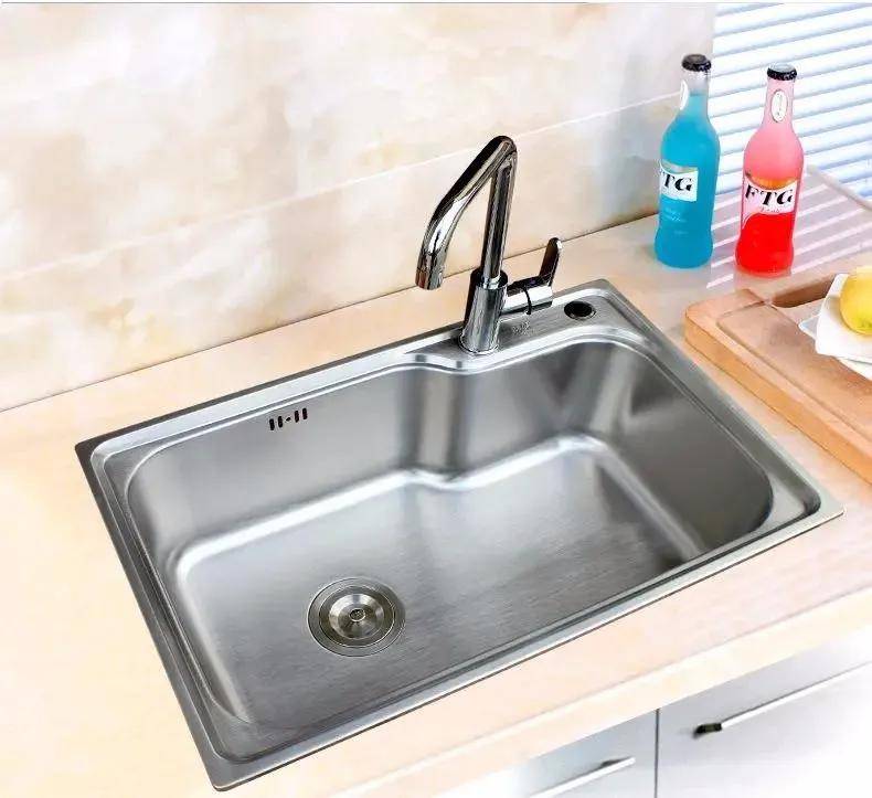大單槽由于空間大,鍋碗瓢盆都能放進去一起洗。設(shè)計成臺下盆,洗碗濺在臺面上的水,很容易推進水槽里,清理更方便。