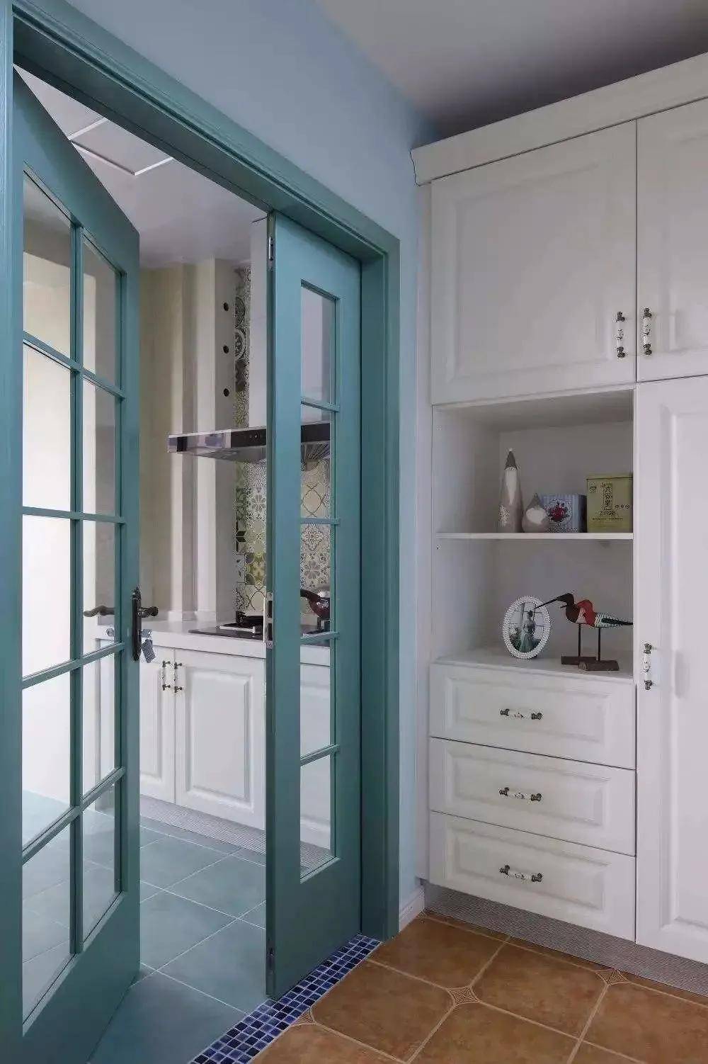 廚房不建議選實木門,因為廚房有油煙和水汽。鋁合金材質(zhì)的門有耐用、樣式多的特點,適合做廚房門。