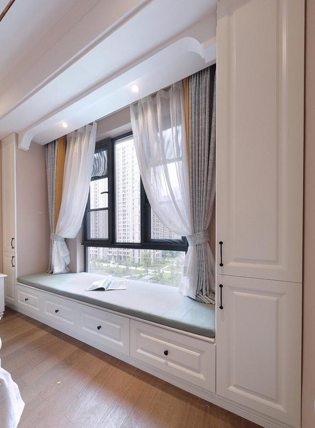 1)不想有大的改動或者設(shè)計,可以加些收納的設(shè)計,讓飄窗表面看起來,是一個原始的形態(tài),仔細瞧,還可以有收納藏在里 面,另外在很大程度上改善了室內(nèi)的采光,以及通風(fēng)程度。