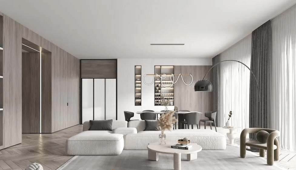 通過墻面的造型、色彩、掛飾等內(nèi)容對區(qū)域做劃分,可以讓客餐廳的空間既相互連通又保持一定的獨立感。