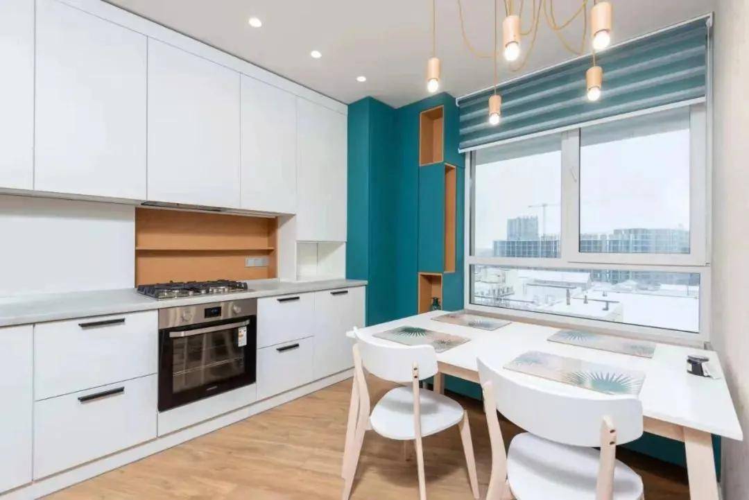 首先就是廚房,開放式設(shè)計的廚房不但可以省去隔斷空間,視覺上也更具空間感,同時將用餐區(qū)域設(shè)置在廚房,功能上也更具聯(lián)動性,家中的功能分區(qū)更加清晰。