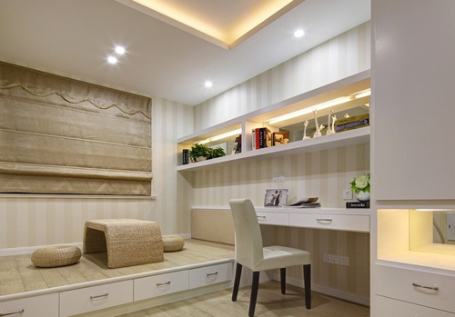 4、榻榻米不僅僅可以運(yùn)用在臥室,在書房、兒童房、飄窗甚至客廳也可以采用榻榻米的形式,來幫助一些功能的實(shí)現(xiàn)。