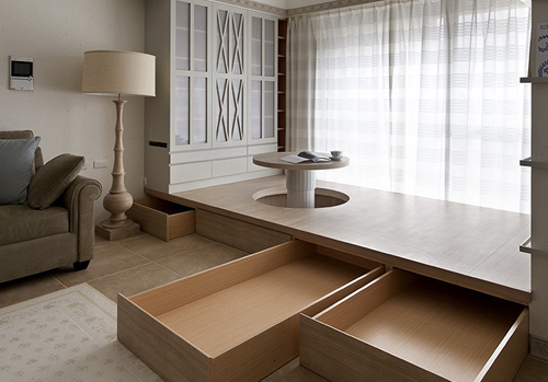 地臺是榻榻米實(shí)現(xiàn)功能的一個(gè)重要配件,所以要把地臺的高度做好設(shè)計(jì)。日式的榻榻米的地臺一般是高出地面30厘米,但在實(shí)際設(shè)計(jì)的時(shí)候可以按照業(yè)主自己的需求進(jìn)行設(shè)計(jì)。