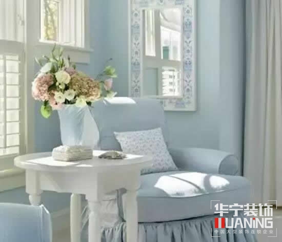 同樣是藍白搭配,淺藍色占主導(dǎo),營造出一個寧靜優(yōu)雅的家居環(huán)境,而純潔的白色融入其中,更是賞心悅目。