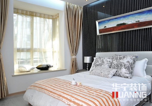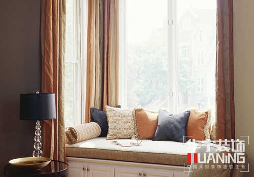 臥室飄窗窗簾在與臥室整體的家居色彩保持協(xié)調(diào)一致之外,通常不會使用泰國鮮艷或者通透的顏色,如果是紗簾之類,也會再加上一層厚重的窗簾。