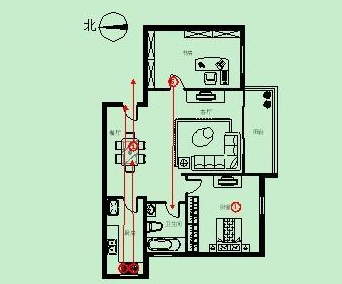 從戶型圖上不難看出,房門朝東,進門正對餐廳,再往前就是廚房,而且三者在在一條直線上。風水上講究餐廳不易正對宅門,而且離得又這么近,“氣不聚則人不聚”,事實上業(yè)主夫婦各有自己的事業(yè),兩人也是聚少離多,很少有聚在家里一起吃飯的時候;古代風水時也講“開門對灶,財富多耗”。另外,衛(wèi)生間不易正對書房,主臥不易在西邊。