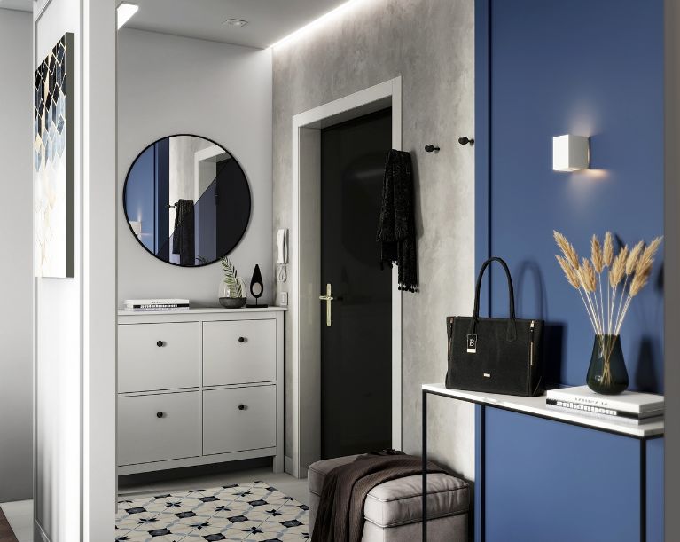 改變動(dòng)線,就需要將空間的功能性進(jìn)行改變。需要將入戶的動(dòng)線改掉,用其他的空間來(lái)遮擋,這樣就從根本上改變了入戶門正對(duì)衛(wèi)生間門的情況。