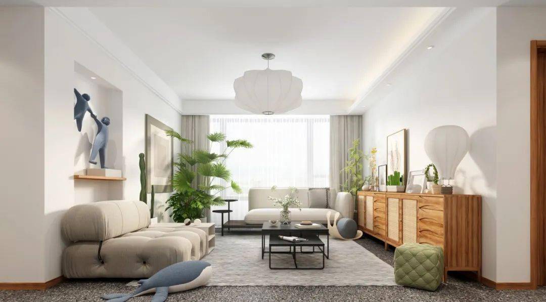 2.以視覺平衡為核心。客廳的家具比較多,高低、大小、顏色等都可能有所不同,因此在搭配的時(shí)候,要注重視覺上的協(xié)調(diào)對(duì)稱。