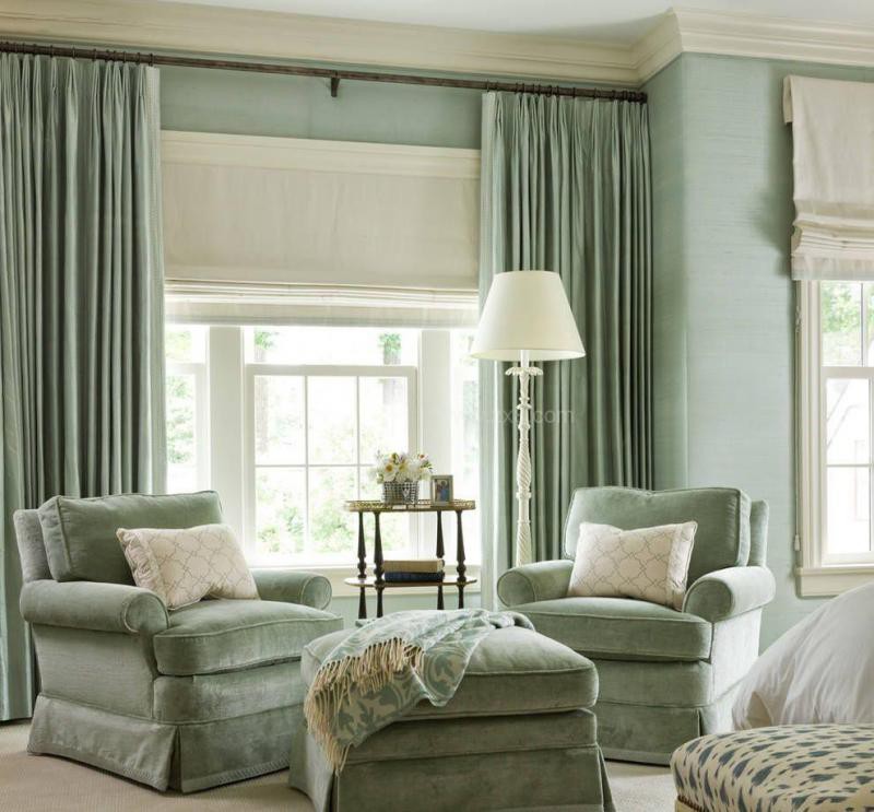 1、西向客廳適宜選用清淡的綠色窗簾
